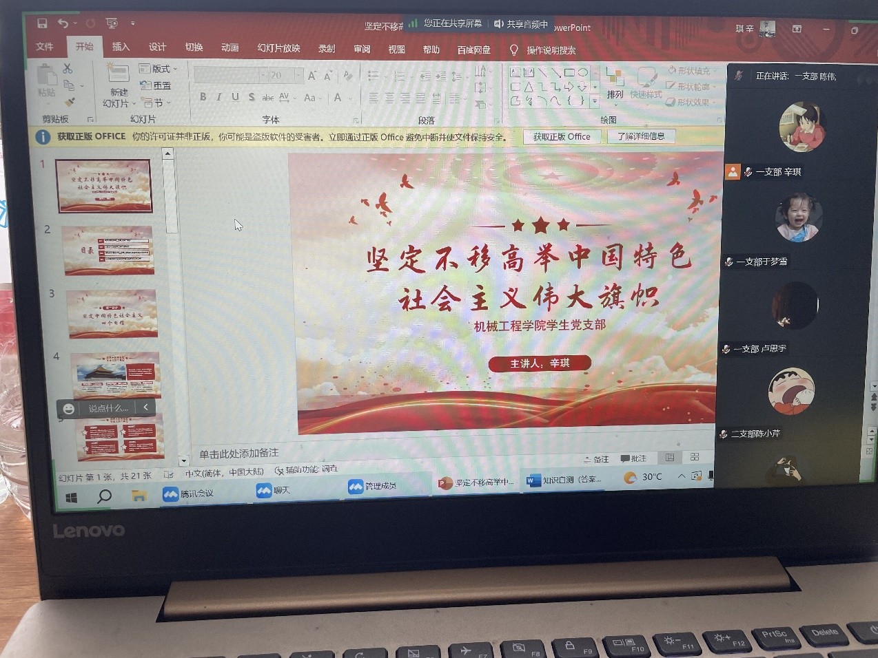 最后,支部成员将专题学习内容与实际情况相结合,深入交流学习心得体会。陈伟同志表示,在新的历史征程中,将坚定不移跟党走,高举社会主义伟大旗帜,在奋斗中释放青春激情,为祖国建设添砖加瓦。周时亮同志结合暑期下乡实习经历表示,应当深入贯彻自力更生、艰苦奋斗精神,将个人理想追求融入国家和民族事业中,不怕困难、攻坚克难,为基层百姓干实事。