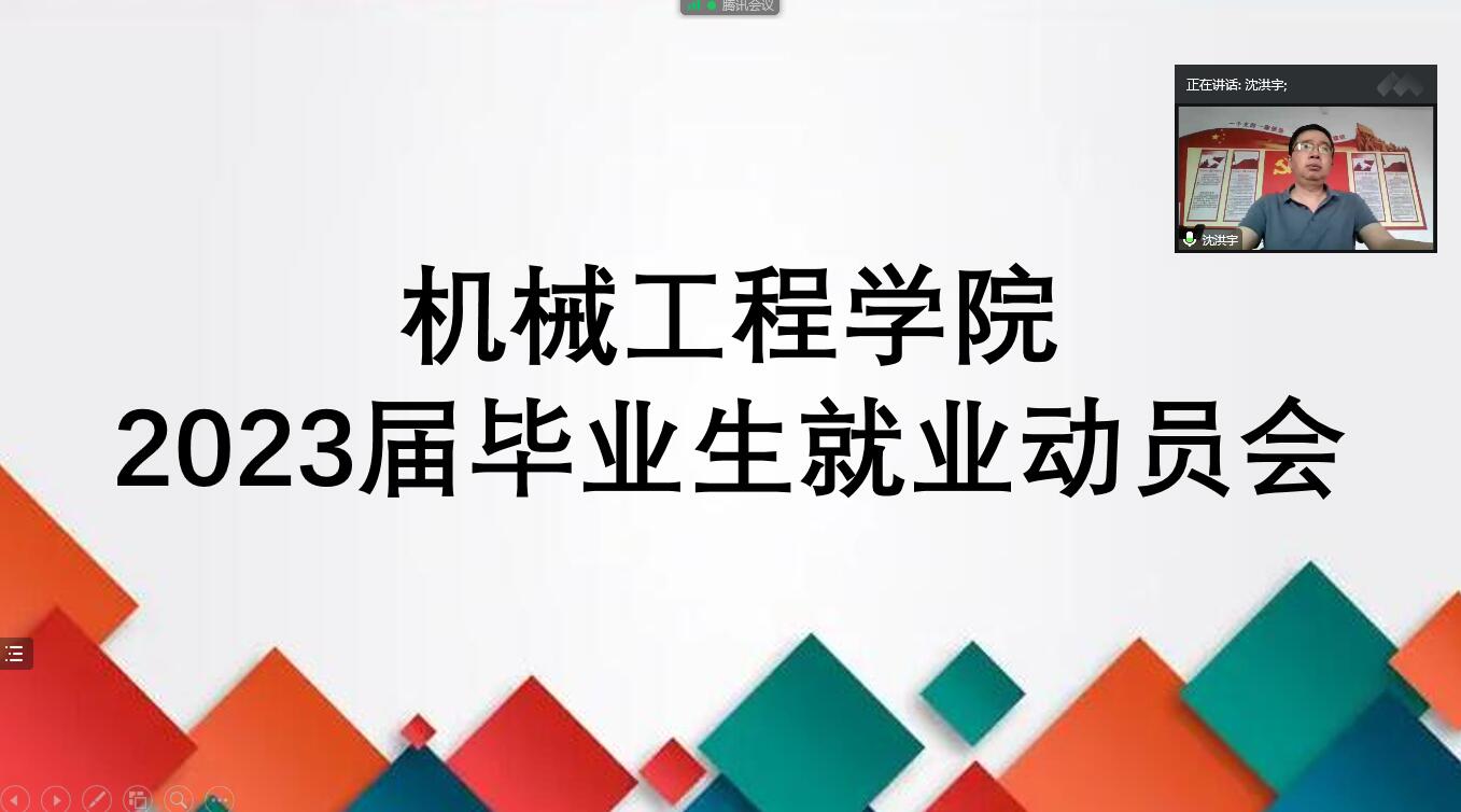 为应对当前复杂严峻的就业形势,切实做好2023届毕业生就业工作,2022年10月5日下午16:00,我院通过腾讯会议召开2023届毕业生就业动员会,大会由学院党总支书记沈洪宇同志主持,2023届毕业生辅导员及全体毕业生参加本次会议。