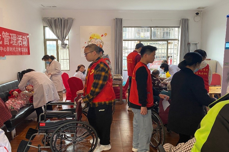 青年志愿者们于上午9点准时到达沙河街道与社区工作人对接后,在工作人员的带领下前往杨家花园老年公寓进行志愿者活动。活动时,志愿者们分工明确,有的陪老人聊天,有的陪老人散步,有的协助医务人员搀扶老人们进行体检,有的帮着整理铺位,给他们按摩、剪指甲等,氛围其乐融融。