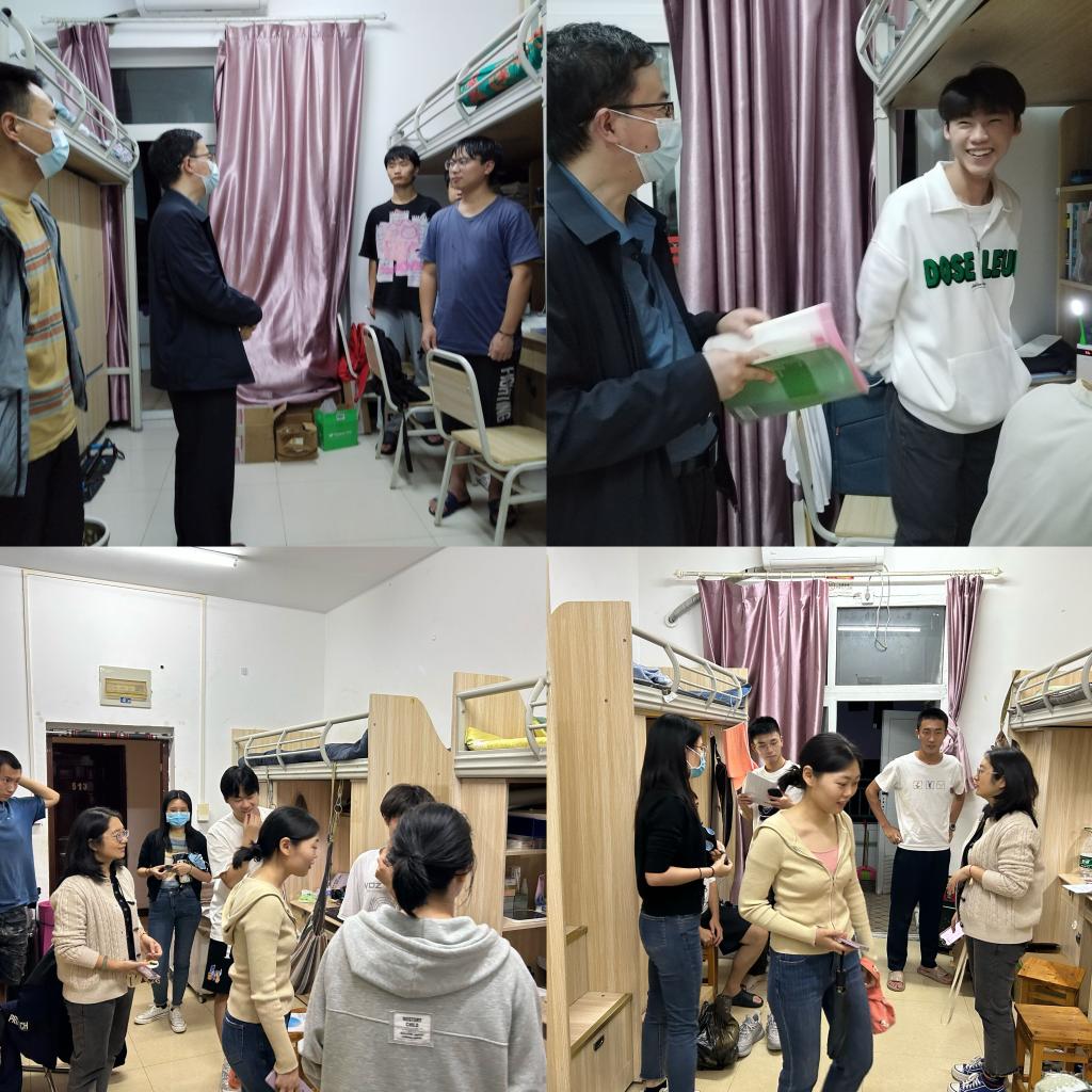 为充分发挥“一站式”学生社区育人功能,为学生营造安全、和谐、稳定的寝室生活环境,2023年6月4日晚上8点,机械学院党总支书记沈洪宇、副书记黎涵带领全体辅导员深入学生寝室,开展安全隐患排查,并及时了解学生在校情况。