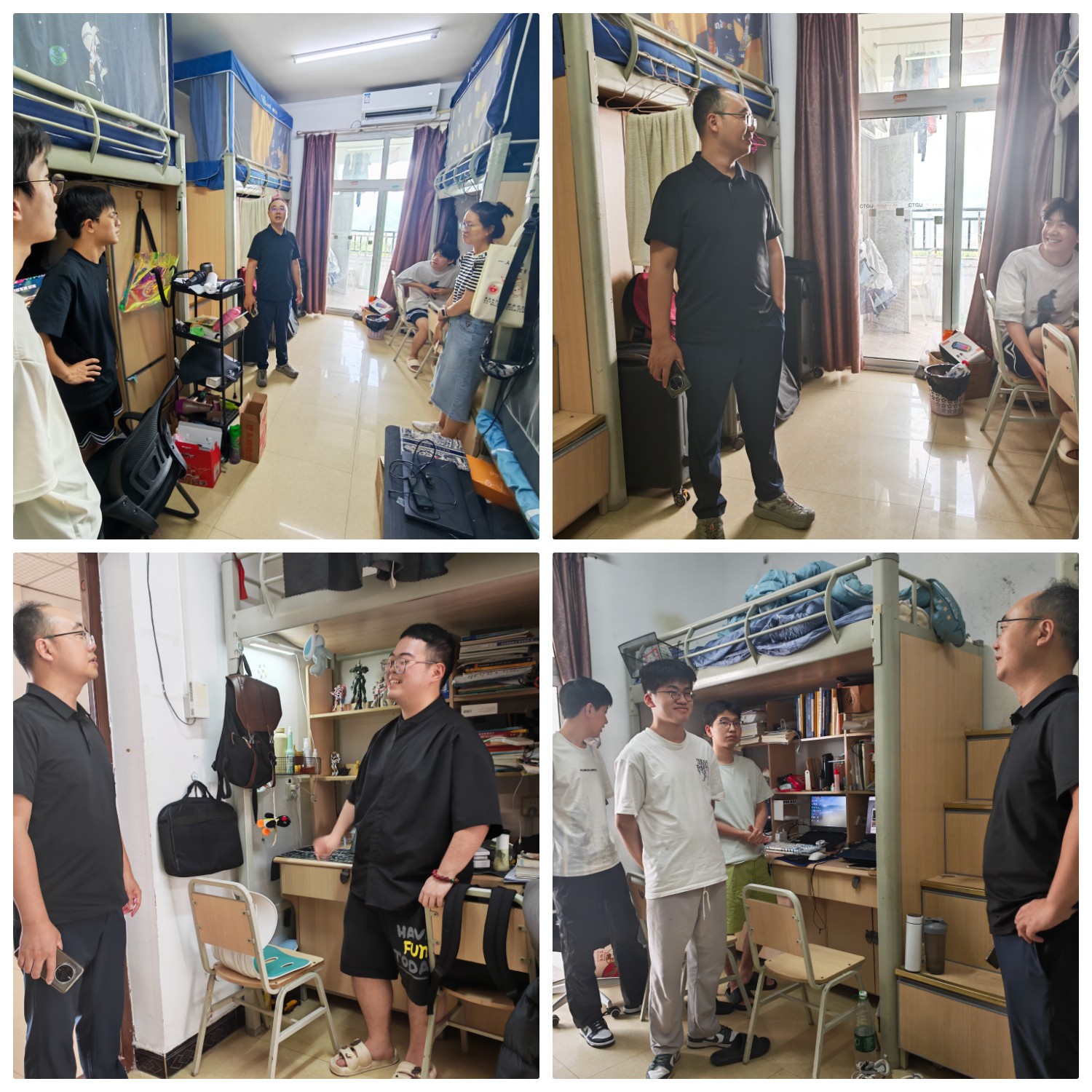 赵书记一行到宿舍重点查看电路设施与电器使用情况,严防漏电、线路老化、违规使用大功率电器等风险,叮嘱同学们一定要严格遵守宿舍安全用电规定。考虑到初秋季节蚊虫较多,还特别提醒同学们及时清理宿舍积水,注意环境卫生。检查过程中,赵书记还与同学深入交流,了解学生学习、生活、就业中遇到的困难和问题,及时答疑解惑。