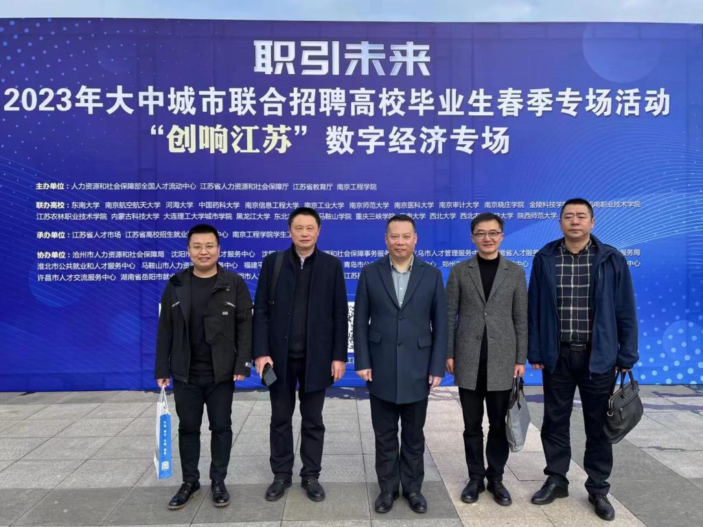2023年3月18日-21日,学校党委常委、副校长臧小林带领招就处、机械学院、电信学院、数统学院就业工作人员参加了人社部人才交流中心和江苏省人社厅联合举办的“2023年大中城市联合招聘高校毕业生春季专场活动”,并在江苏开展访企拓岗活动,学院专职组织员曾继平一同前往。