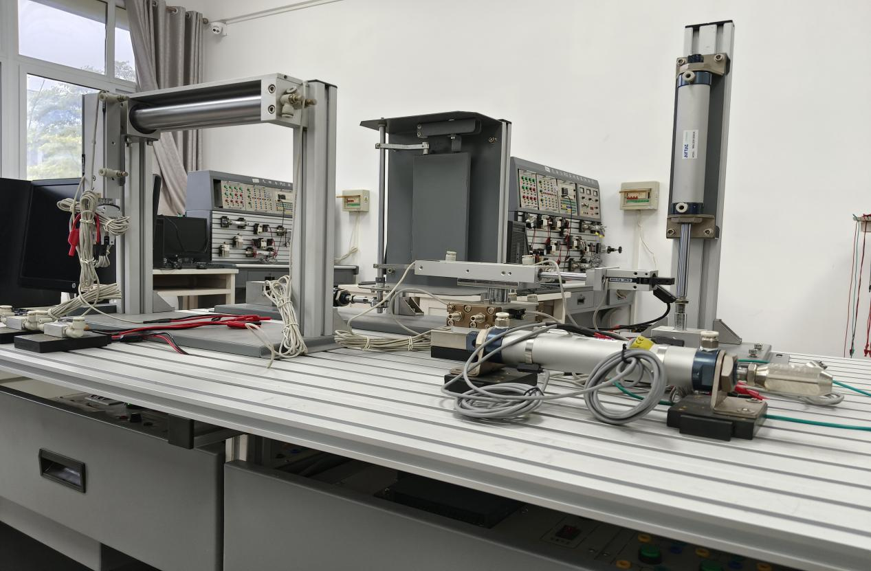 气压传动实训室主要设备有气压与PLC实训装置和气压传动系统创新应用实训装置。实训室可以完成气压传动基本回路实验、继电器控制的气压压传动实验、PLC控制的气压传动实验以及根据实物模型搭接气路和控制电路的综合实训;该实训室主要用于教学和学生创新设计提供实验条件。