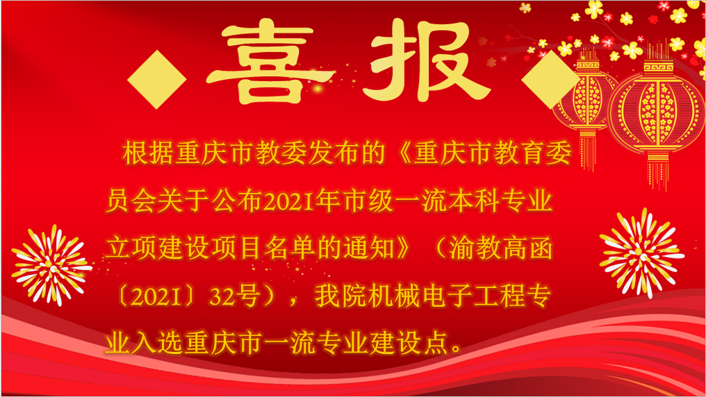 喜讯:我院机械电子工程专业获重庆市一流建设专业立项