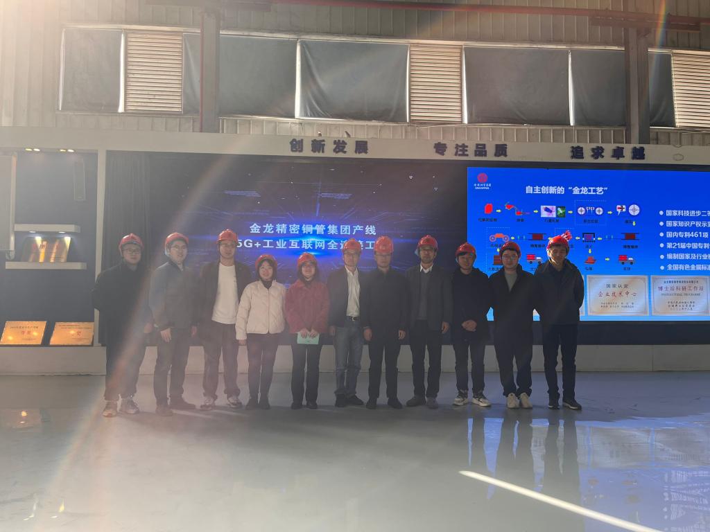 此次调研主要从参观生产线、座谈交流、企业需求等方面开展。首先,在金龙铜管集团研究院院长、中科金龙公司总经理程大勇和金龙精密铜管集团股份有限公司副总经理张习刚的带领下,前往集团生产线参观,了解企业实际需求及急需解决的技术性问题。随后,召开座谈会。