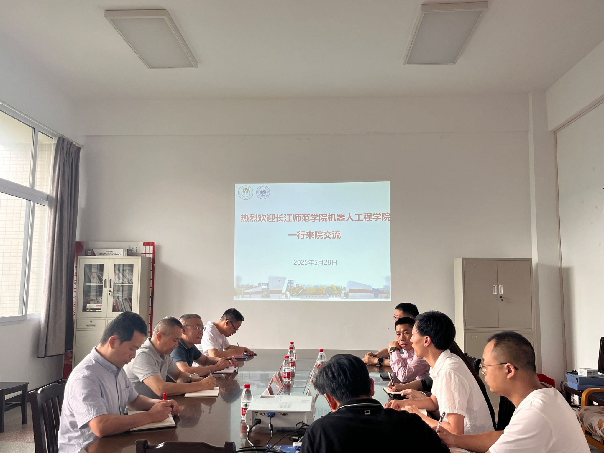5月28日下午,长江师范学院机器人工程学院党委书记、院长黄江波一行来院交流,学校党委常委、副校长尹立孟、学院党总支书记熊贞贞、院长赖于树及相关教师代表参会,会议由赖于树主持。