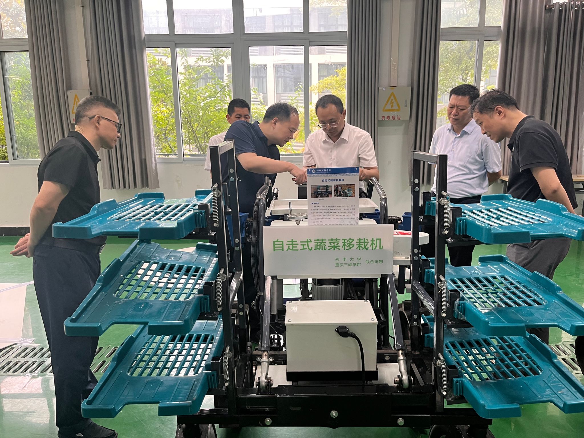 蒲骥先后参观重庆市轻合金材料与加工工程技术研究中心、智能山地农机技术研究中心。通过现场察看、听取汇报,蒲骥对我校智能山地农机创新工作表示肯定,强调学校要进一步加大科技成果的转化,为服务三峡地区经济发展作出更大的贡献。