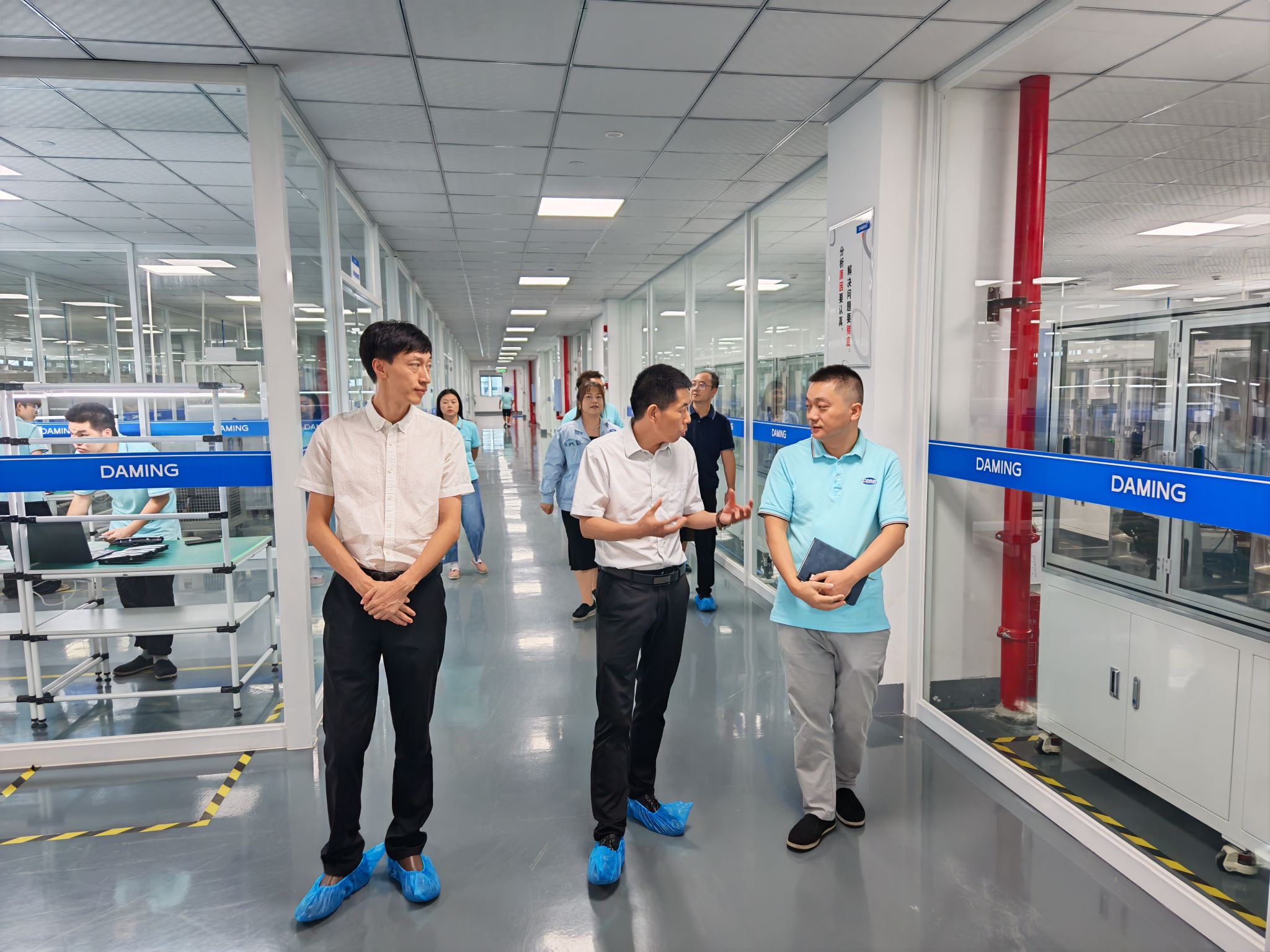 尹立孟副校长一行首先参观了大明电子的生产车间。企业车间负责人详细介绍了公司的核心产品线、智能化生产流程及技术研发方向,现场展示了自动化生产线、精密检测设备等先进设施,使大家直观感受到电子制造行业的前沿技术现状与岗位需求。